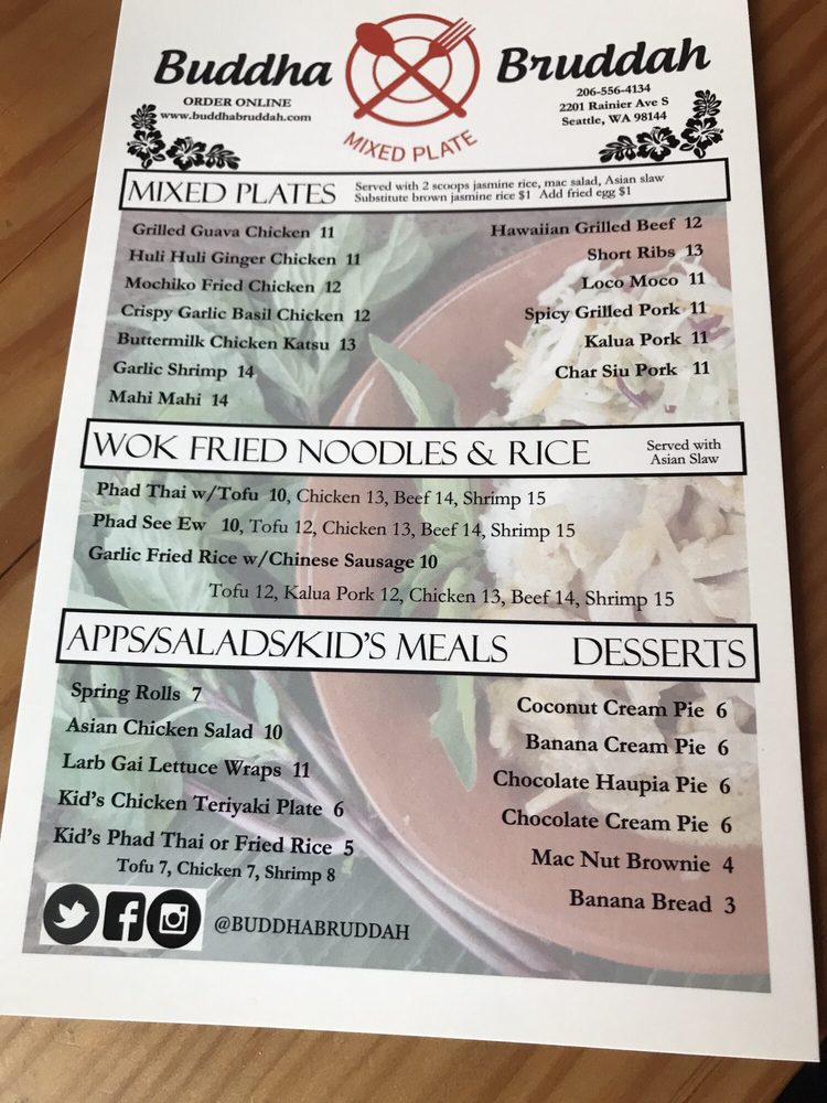 Welcome to Buddha Bruddah, a vibrant gem tucked away in Seattle's Rainier Avenue. This Thai eatery boasts a menu inspired by Hawaiian flavors, with a focus on fresh, wholesome ingredients. Their Loco Moco, a local favorite, along with Chicken Katsu and the delightful Grilled Mahi Mahi, showcase the culinary flair that keeps patrons coming back for more.